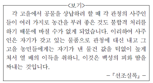 11. <보기>와 같은 폐단을 해결하기 위해 실시한 제도에 대한 설명으로 가장 옳지 않은 것은?