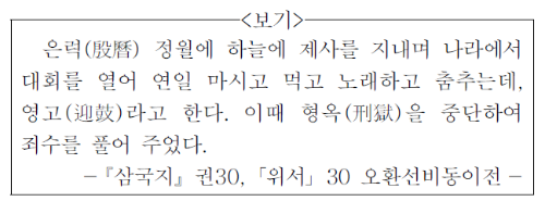 영고를 통해 <보기>에서 설명하는 나라가 부여임을 알 수 있습니다. 부여에서는 12월에 영고라는 제천 행사를 열었습니다.