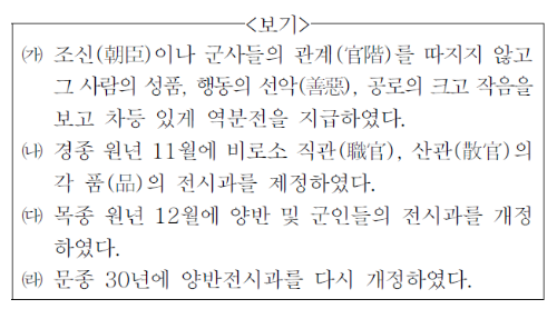 8. <보기>의 고려 토지제도 (가)~(라) 각각에 대한 설명으로 가장 옳지 않은 것은?