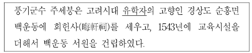주세붕, 백운동 서원을 통해 밑줄 친 ‘유학자’가 안향임을 알 수 있습니다. 백운동 서원은 주세붕이 세운 우리나라 최초의 서원으로 고려 시대의 유학자인 안향을 모시기 위해 설립된 것이었습니다.