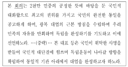 ① 대한민국 건국 강령이 상정되었다.