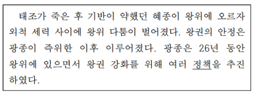 → 광종(광종은 후주에서 귀화한 쌍기의 건의를 받아들여 관리 선발 제도인 과거제를 실시하였고, 이를 통해 신구 세력의 교체를 도모하였다)