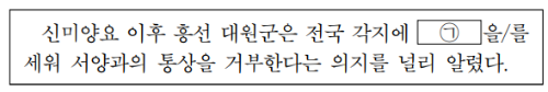 흥선 대원군, 서양과의 통상 거부 의지를 통해 ㉠이 척화비임을 알 수 있다.