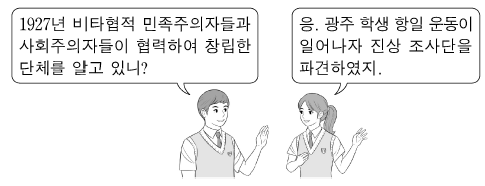 광주 학생 항일 운동에 진상 조사단 파견을 통해 제시된 대화에 해당하는 단체가 신간회임을 알 수 있다.