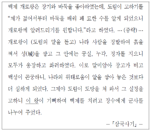 백제 개로왕, 도림을 통해 밑줄 친 ‘이 왕’이 고구려 장수왕임을 알 수 있습니다. 장수왕은 백제의 한성을 공격하기 전에 승려 도림을 첩자로 백제에 파견하여 그의 꼬임에 넘어가 백제 개로왕이 국고를 탕진하도록 하였습니다. 이후 도림이 도망쳐 오고 고구려는 백제를 공격하였습니다. 이때 개로왕이 전사하였습니다.