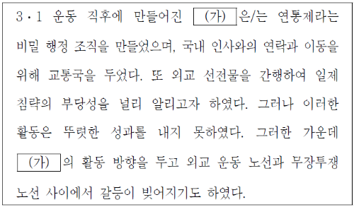 3·1 운동 이후 만들어짐, 연통제, 교통국을 통해 (가)가 대한민국 임시 정부임을 알 수 있습니다. 3·1 운동 이후 독립운동을 조직적으로 전개할 필요성이 대두되어 대한민국 임시 정부가 수립되었습니다. 대한민국 임시 정부는 비밀 행정 조직망으로 교통국, 연통제 등을 운영하였습니다.