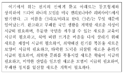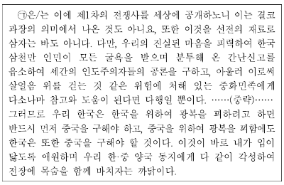 제시문은 백범 김구가 1932년에 저술한 『도왜실기』이다. 『도왜실기』는 김구가 한인 애국단의 의열 활동을 저술한 책이다. 제시문이 어렵더라도 옳지 않은 것을 고르는 것이니 선택지에서 다른 내용을 고르면 된다.