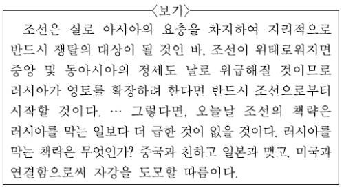 → O(<보기>는 청의 외교관이었던 황준헌이 작성한 『조선책략』의 내용입니다)