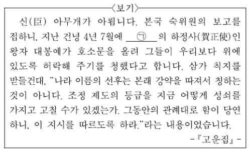 대봉예를 통해 ㉠ 나라가 발해임을 알 수 있습니다. 대씨는 발해 왕족의 성씨입니다.