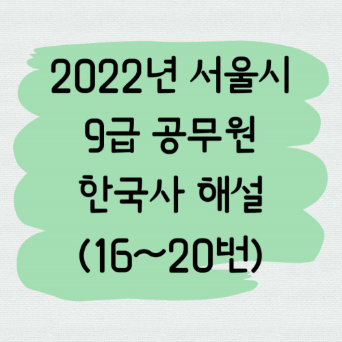 | 2022년 서울시 9급 6월 공무원 한국사('A'책형)_11~15번 풀이 (0) | 2023.01.24 |
