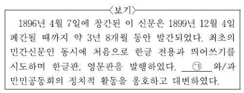 최초의 민간 신문, 만민 공동회를 통해 제시된 신문이 독립신문임을 알 수 있고, 이를 발행한 ㉠ 단체는 독립 협회입니다. 독립신문은 서재필 등이 발행한 우리나라 최초의 민간 신문으로, 이를 통해 독립 협회가 창립되는 토대를 마련하였습니다. 한편 독립 협회는 우리나라 최초의 근대적 민중 집회인 만민 공동회를 개최하였습니다.