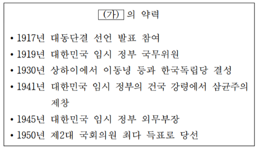 삼균주의를 통해 (가)에 들어갈 인물이 조소앙임을 알 수 있다.